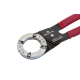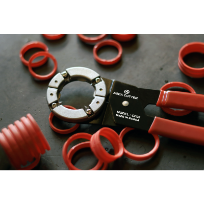재질 : 헤드(아연), 칼날(SK-5), 손잡이(PVC코팅) 특징 : CD관(주름관) 전용커터로 내부에 삽입되어 있는 전선 또는 파이프에 손상을 주지 않고 바깥쪽의 CD관만 깨끗하세 자를 수 있는 커터 규격은 16mm, 22mm, 28mm, 22-28mm겸용, 네 가지 규격으로 제작되었으며 손목에 큰 무리 없이 90도 회전으로 CD관을 절단할 수 있다